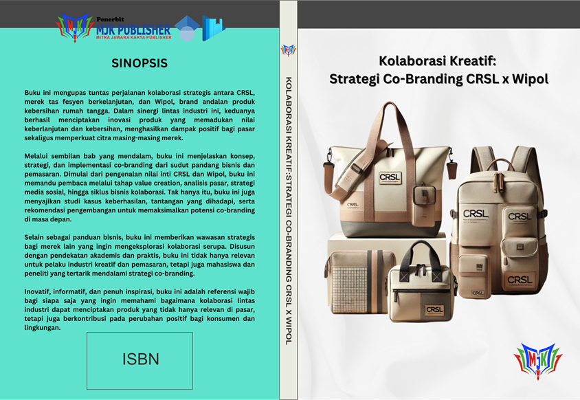 Buku ini mengupas tuntas perjalanan kolaborasi strategis antara CRSL merek tas fesyen berkelanjutan dan Wipol brand andalan produk kebersihan rumah tangga. Dalam sinergi lintas industri ini, keduanya berhasil menciptakan inovasi produk yang memadukan nilai keberlanjutan dan kebersihan, menghasilkan dampak positif bagi pasar sekaligus memperkuat citra masing-masing merek.