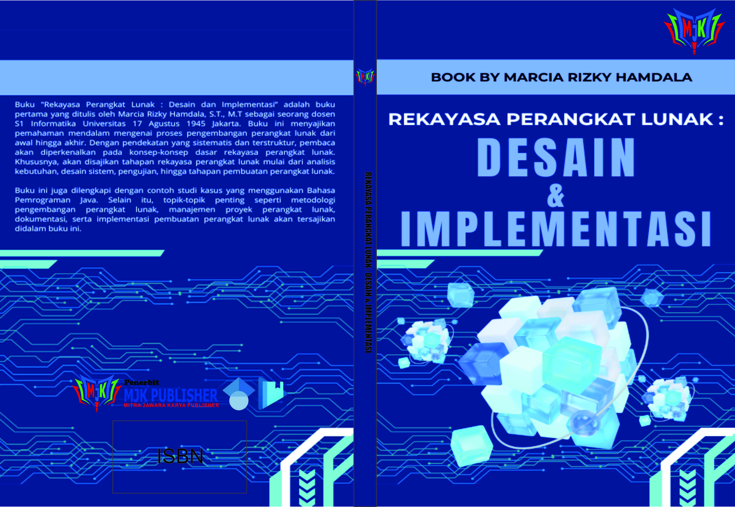 Buku “Rekayasa Perangkat Lunak : Desain dan Implementasi” adalah buku pertama yang ditulis oleh Marcia Rizky Hamdala, S.T., M.T sebagai seorang dosen S1 Informatika Universitas 17 Agustus 1945 Jakarta. Buku ini menyajikan pemahaman mendalam mengenai proses pengembangan perangkat lunak dari awal hingga akhir.
